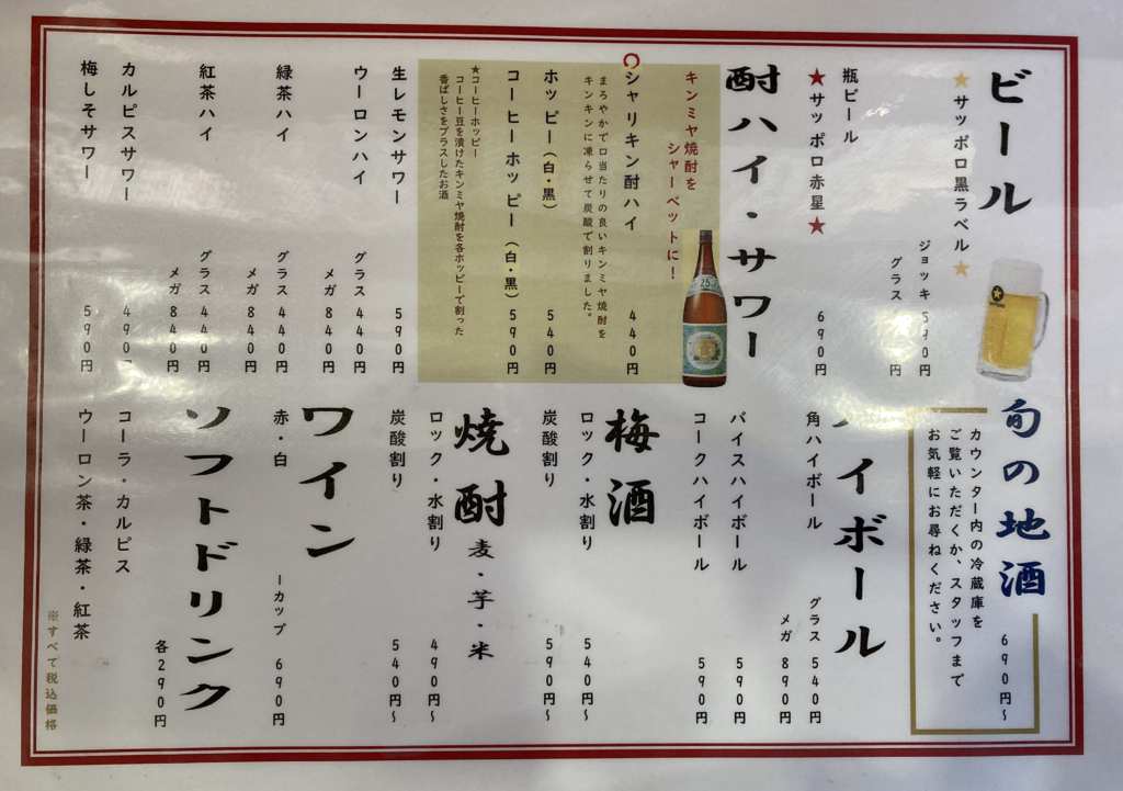 最初の一杯というより、午後から夜へと繋がる時間の入口としての一杯目にはシャリキン酎ハイをチョイス。