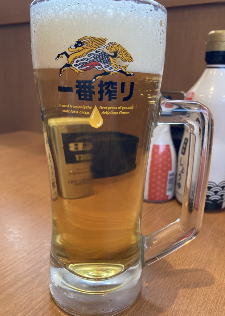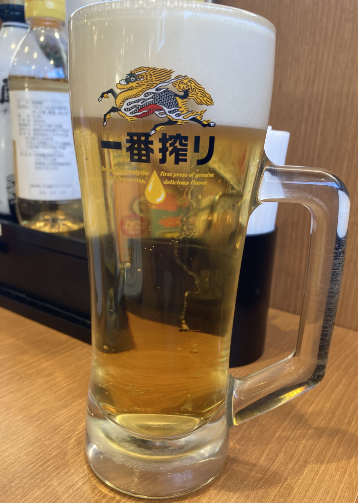 ビールは中サイズでコスパも良く、昼の明るい時間帯に飲む炭酸の刺激が心地よいです。
