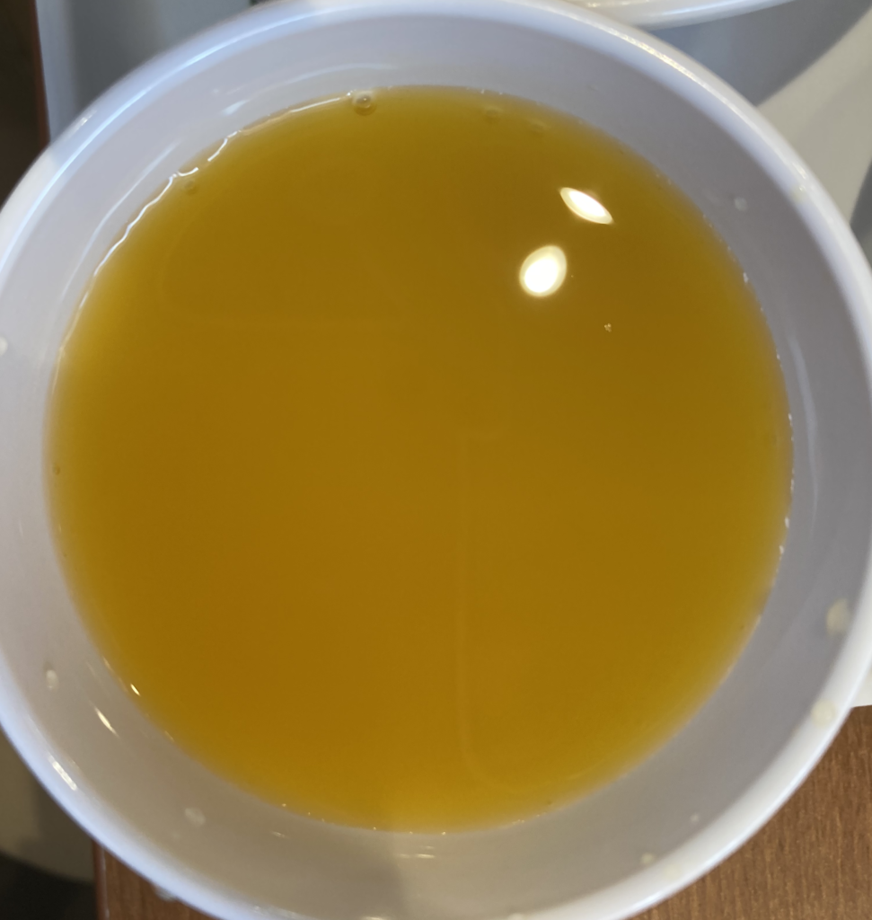 提供されたラーメンは、まずスープだけを一口。