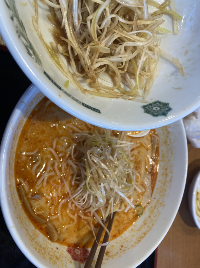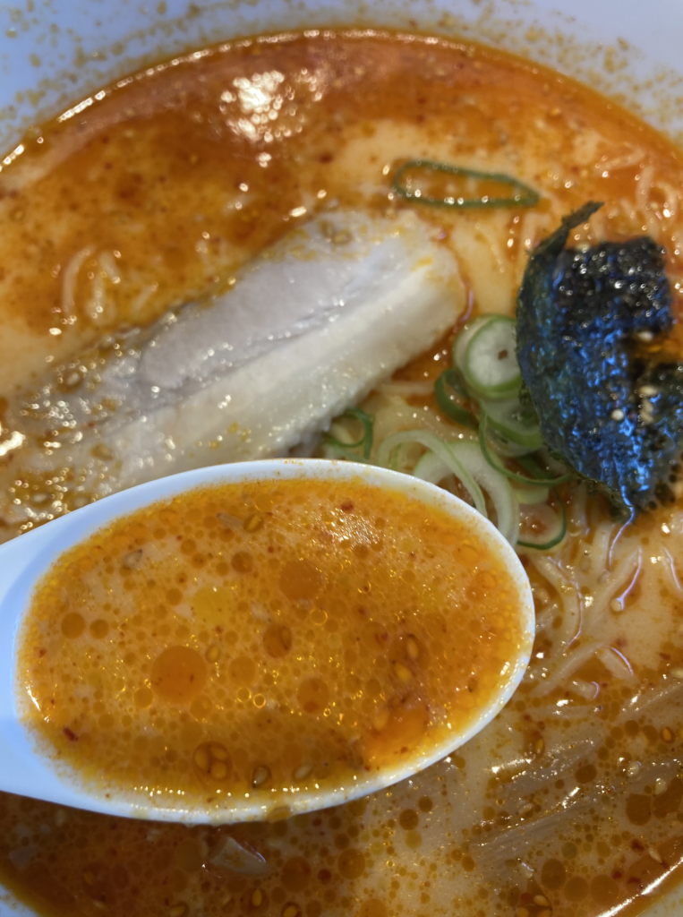 ネギの辛味が加わることで、豚骨×ピリ辛の重心がさらに引き締まり、スープの後味がクリーンに感じられていきます。