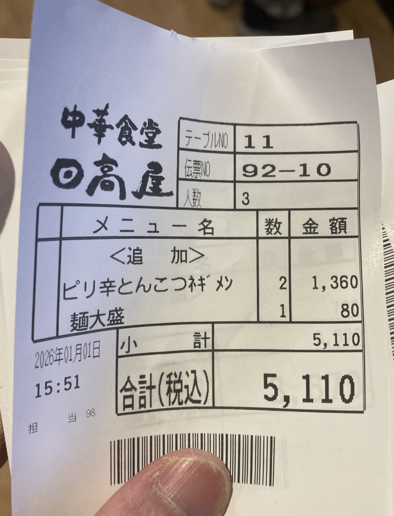 それを日高屋で過ごせたことに、満足と感謝を抱きながら、今年一年の幸せを願って箸を置きました。
