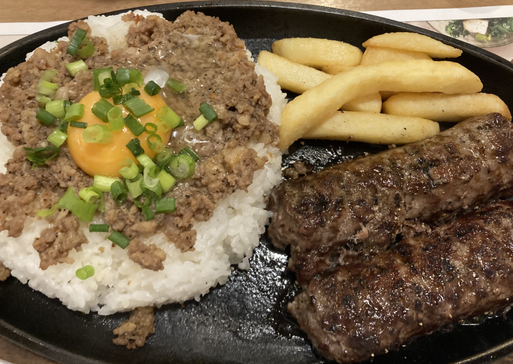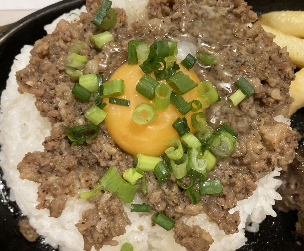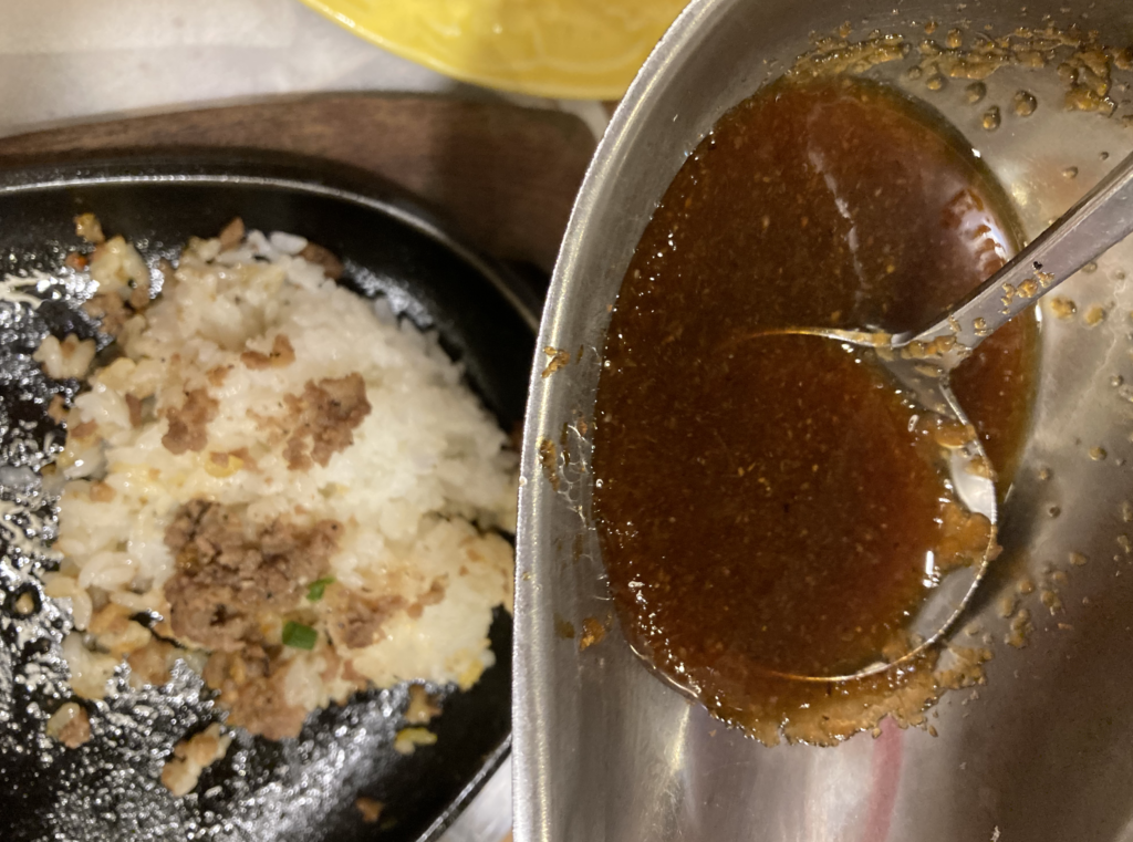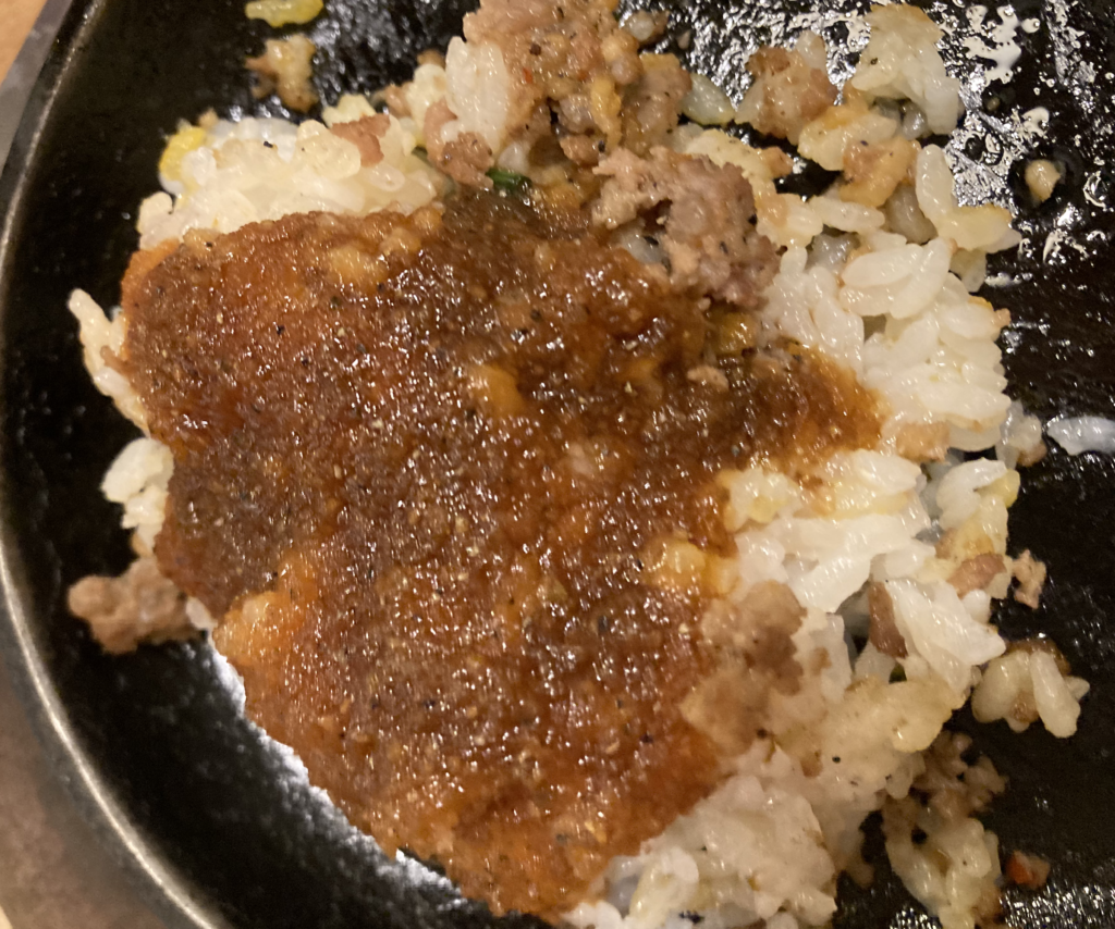 - ガーリックビーフライ+卵黄+ステーキソースの三段階ライスは再現性高
