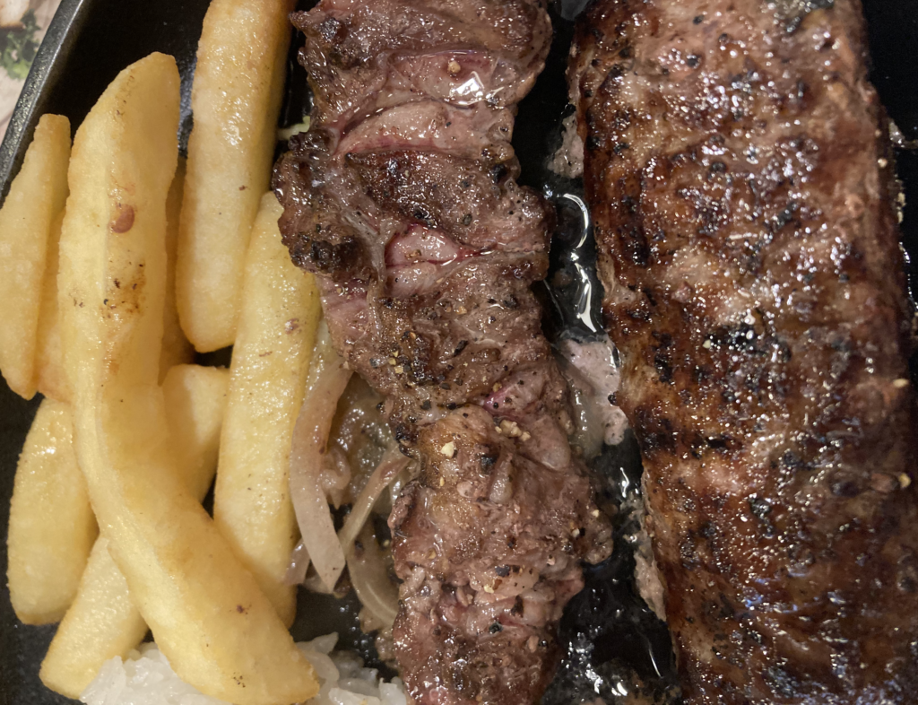 炭焼きの香り、適度な脂、そして鉄板で提供されることで生まれる臨場感。