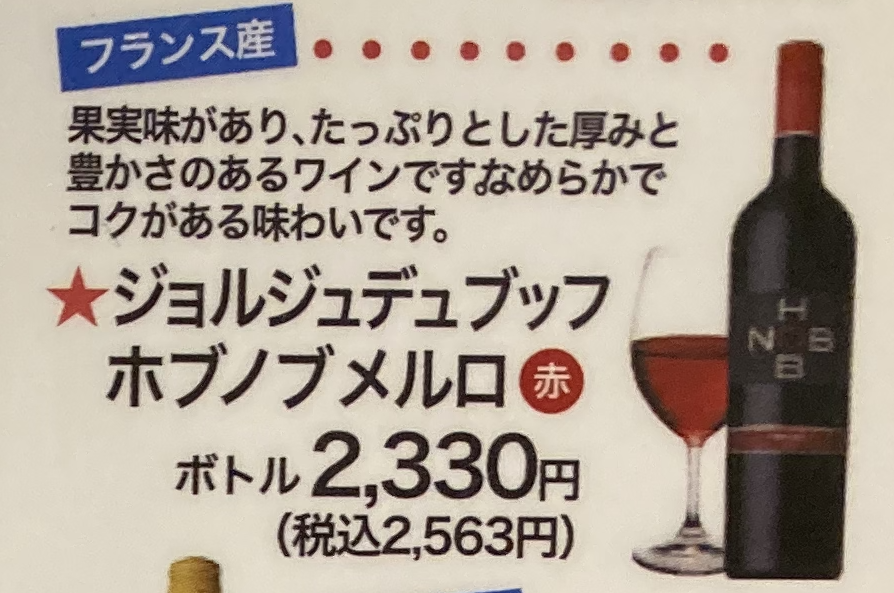 ジョルジュ・デュブッフ・ホブノブ メルロ(ボトル):2,563円