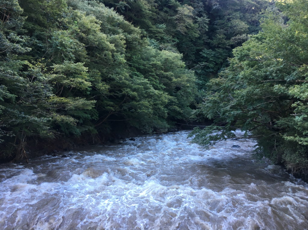 水位は異常なほど高く、茶色く濁った水が、ものすごい勢い。