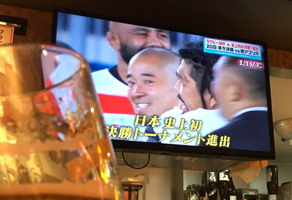 ラグビーの試合を見ながら、ゆっくりと過ごす。