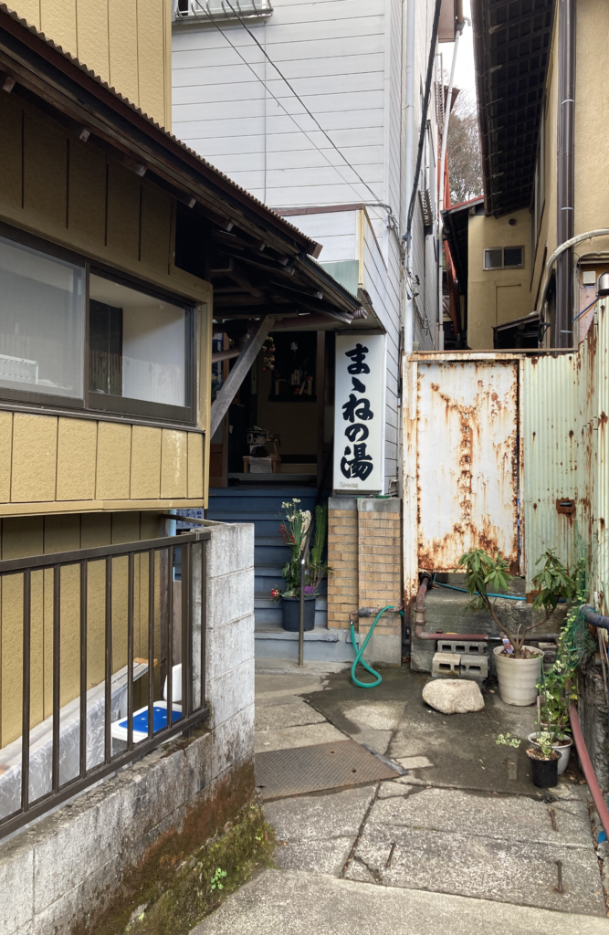 バスを下車し、歩いていくその途中、“お気に入りの温泉”であるままねの湯の近くを通りすぎる。