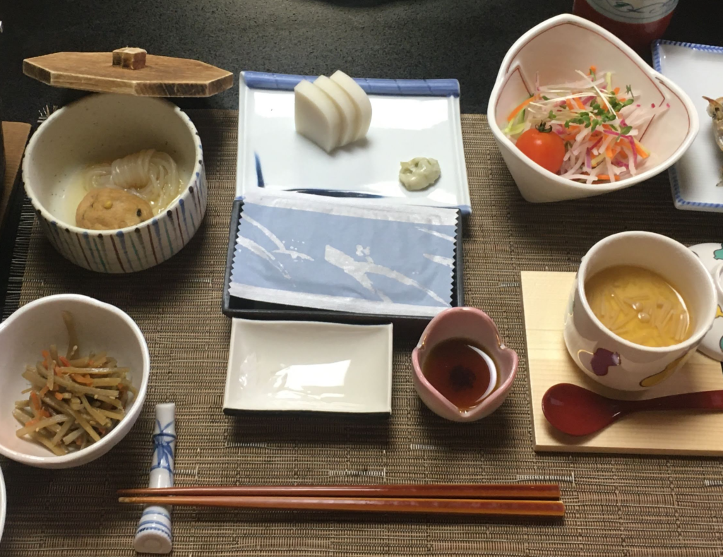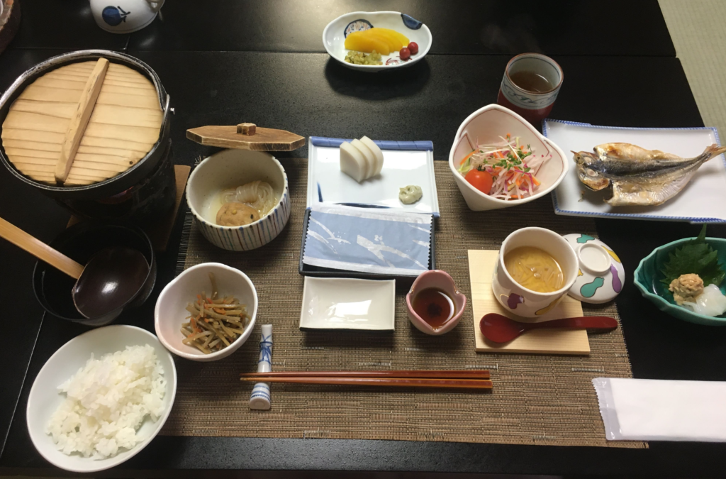 温泉から戻り、朝食の準備が整います。