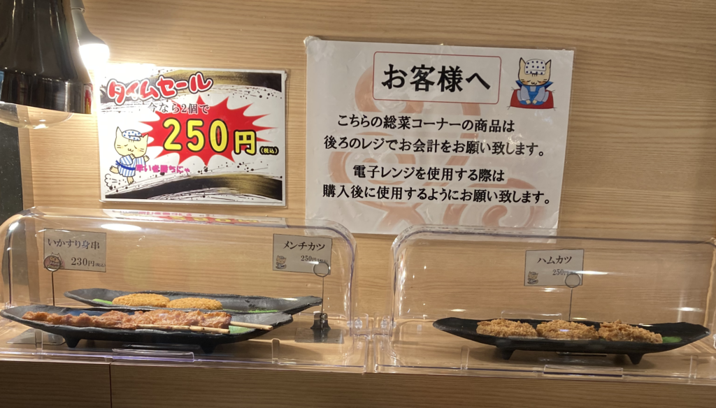 この日は、メンチカツとハムカツ、2つ合わせて250円。