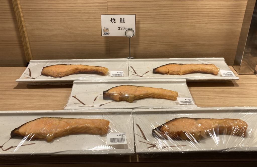 本当は、同じところに並んでいた、しゃけの塩焼きを狙っていたのですが…