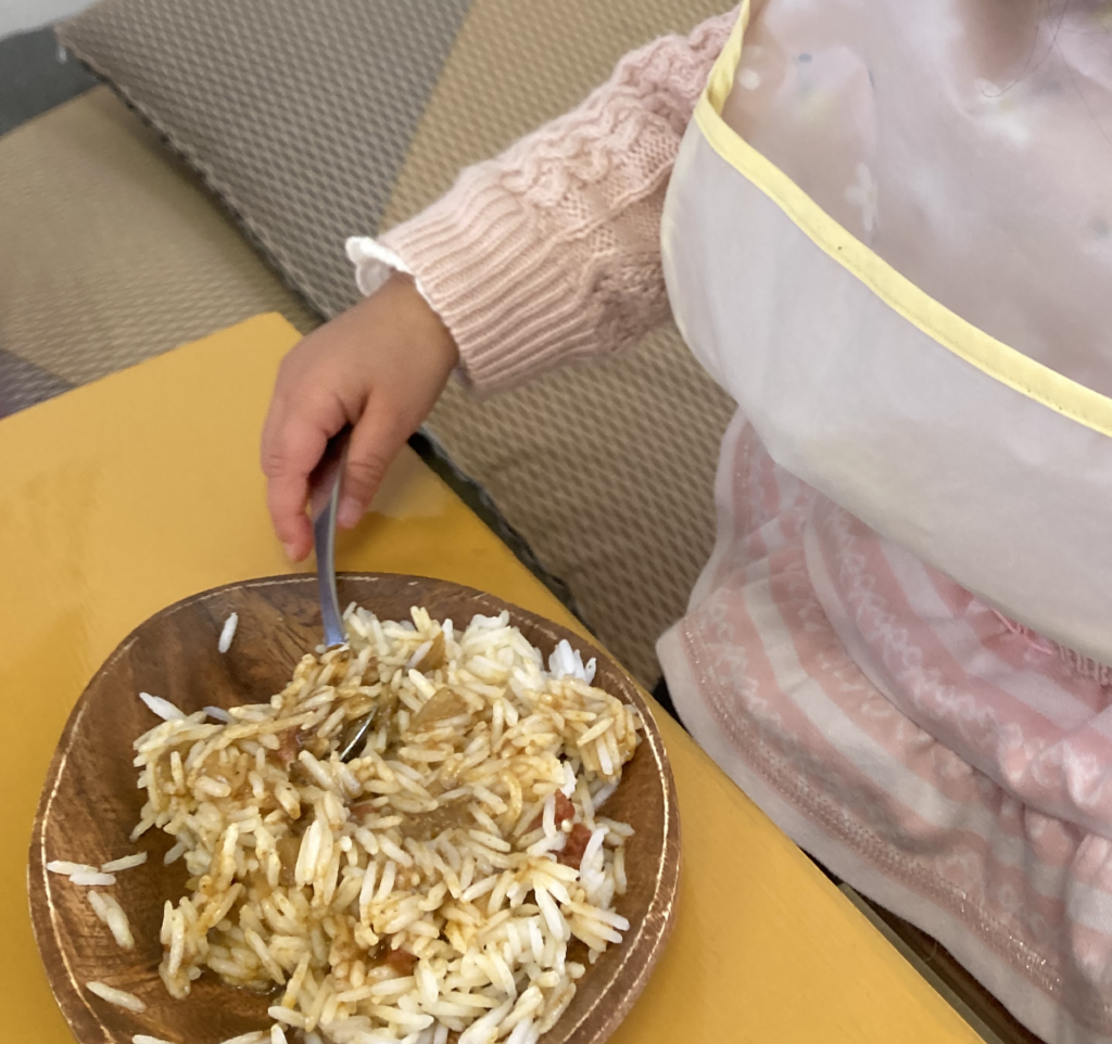 娘はスプーンを持ち、自分のペースで、驚くほど黙々と食べ続け、最終的には完食。