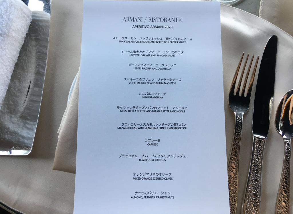 この日のフリーフローには、写真にある 「APERITIVO ARMANI 2020」 のアミューズがセットで付いていました。