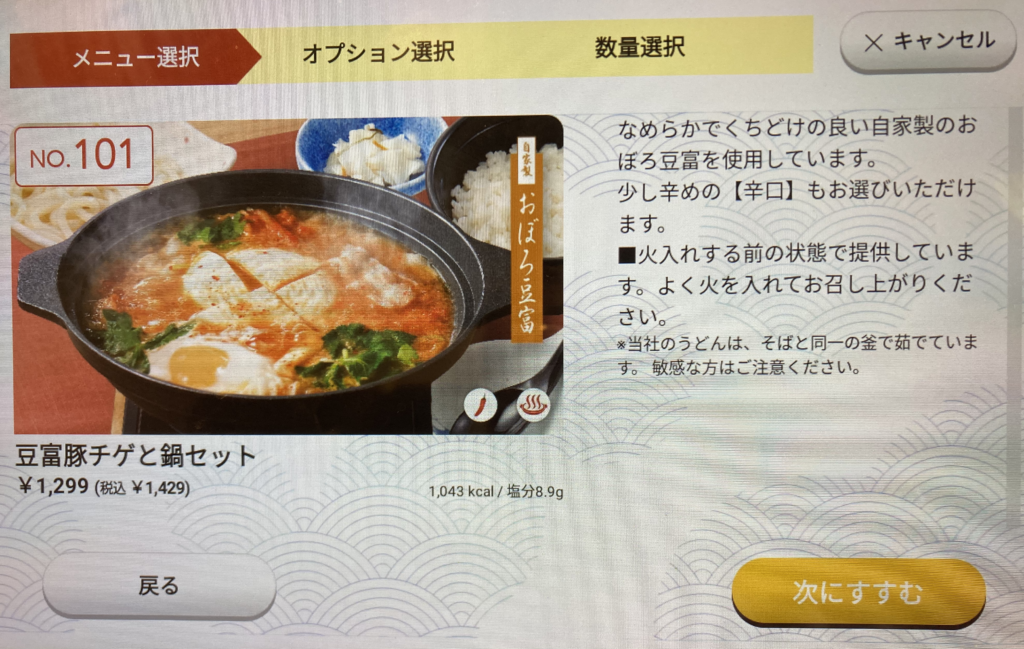 - チゲ → うどん → 雑炊の流れは安定