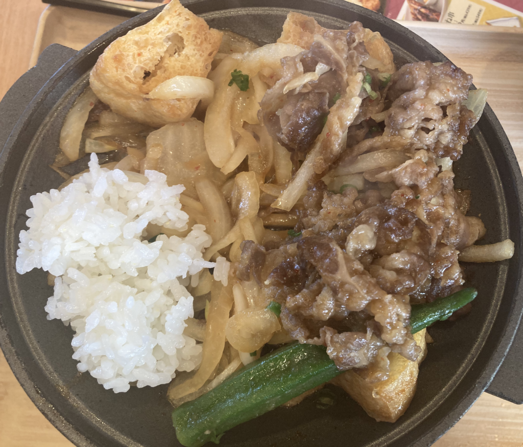 続いては、新メニューの「栃尾揚げ入り甘辛牛バラ焼肉」を検証。