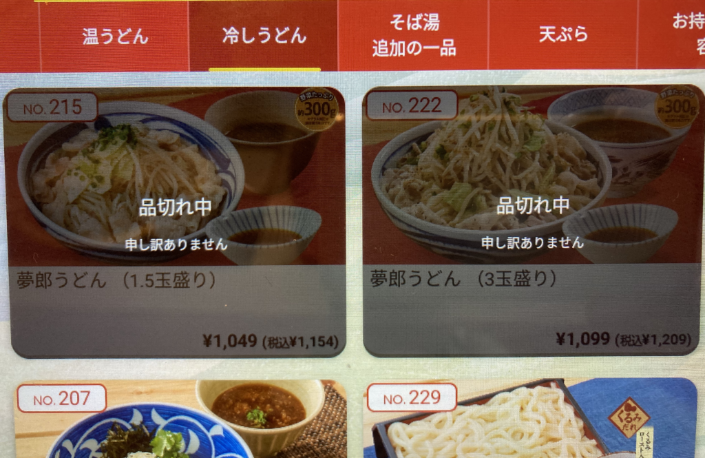 - 夢郎うどん売り切れ