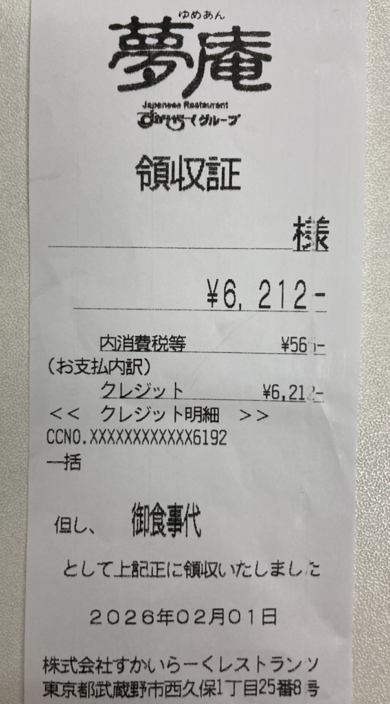 2026年2月1日、日曜日。この日は、久しぶりに家族で 夢庵(ゆめあん) へ。