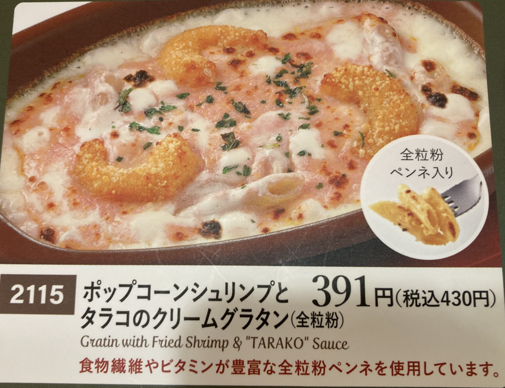 今回合わせたのは、ポップコーンシュリンプタラコのクリームグラタン(税込430円)