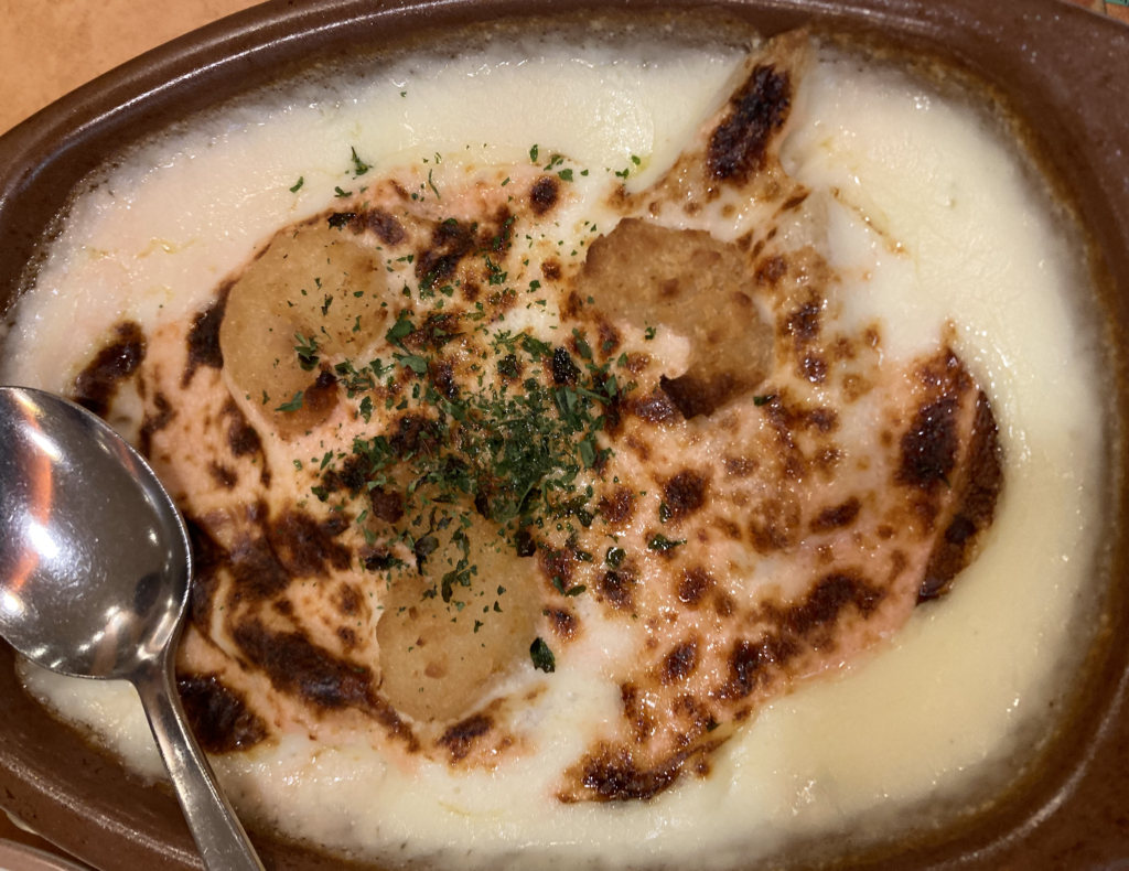 ポップコーンシュリンプ・タラコのクリームグラタンとの相性は良好。