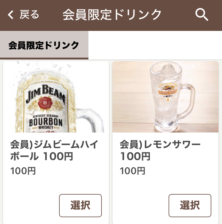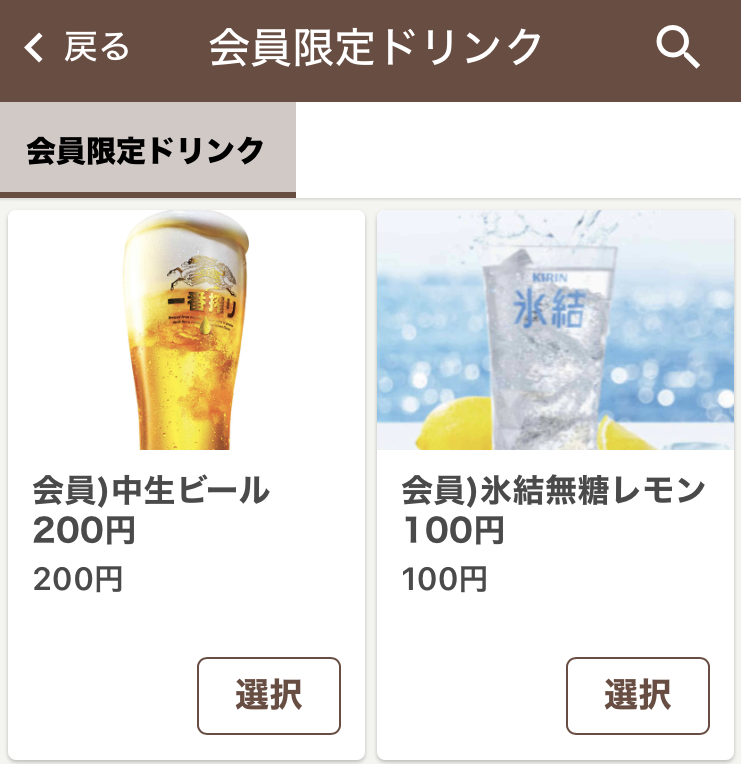 - レモンサワー → 100円