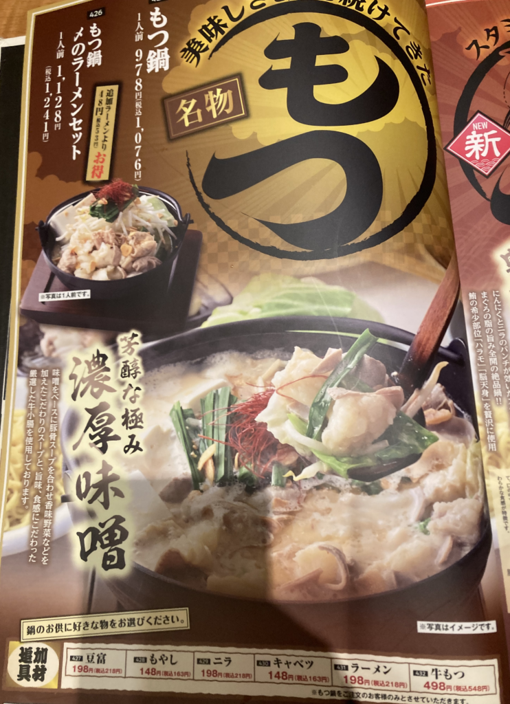 - もつ鍋(ラーメンセット付き) ¥1,241