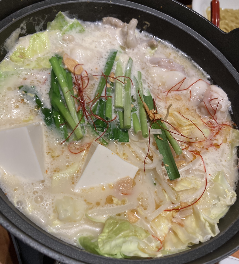 スープの旨味をたっぷり吸ったラーメンはもつ鍋の〆の定番ですが、汁との絡みが非常に良く、噛みしめるほどに深い味わい。
