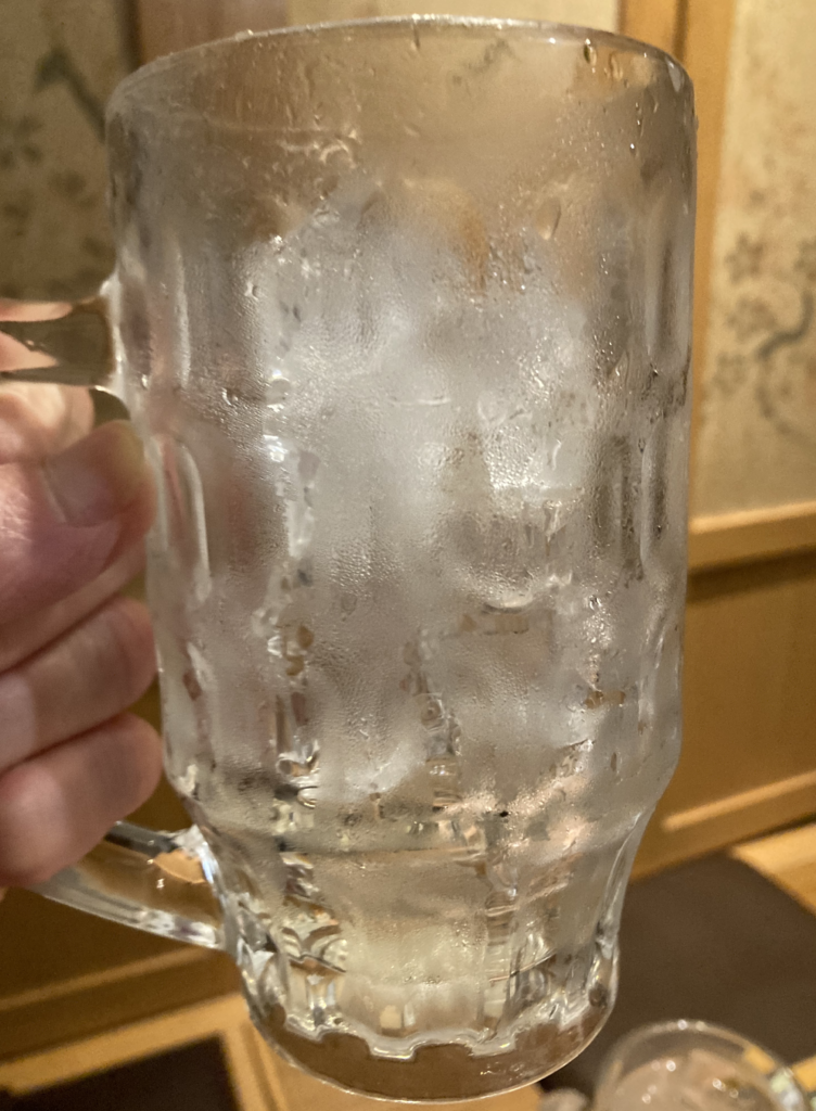 ハイボールジョッキは確かに普通なのですが、氷量のせいで実際の飲酒量が少なく感じられたのは事実。