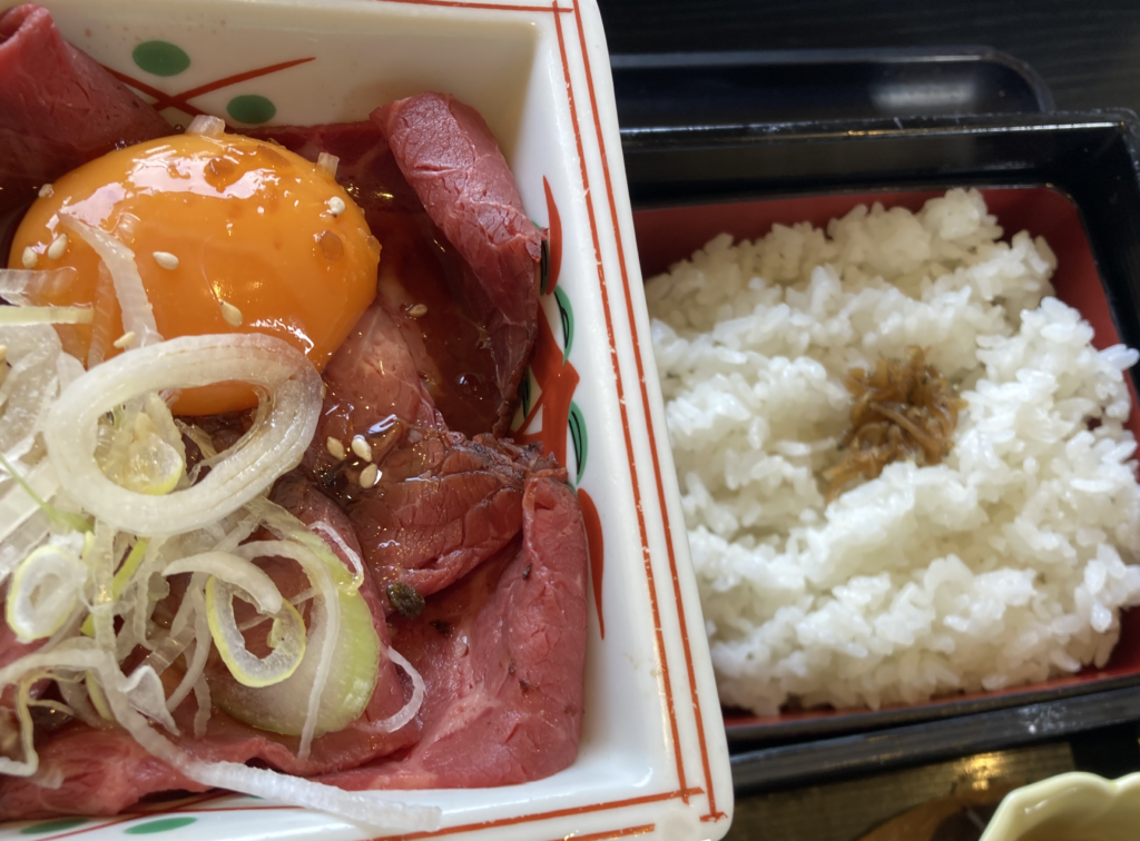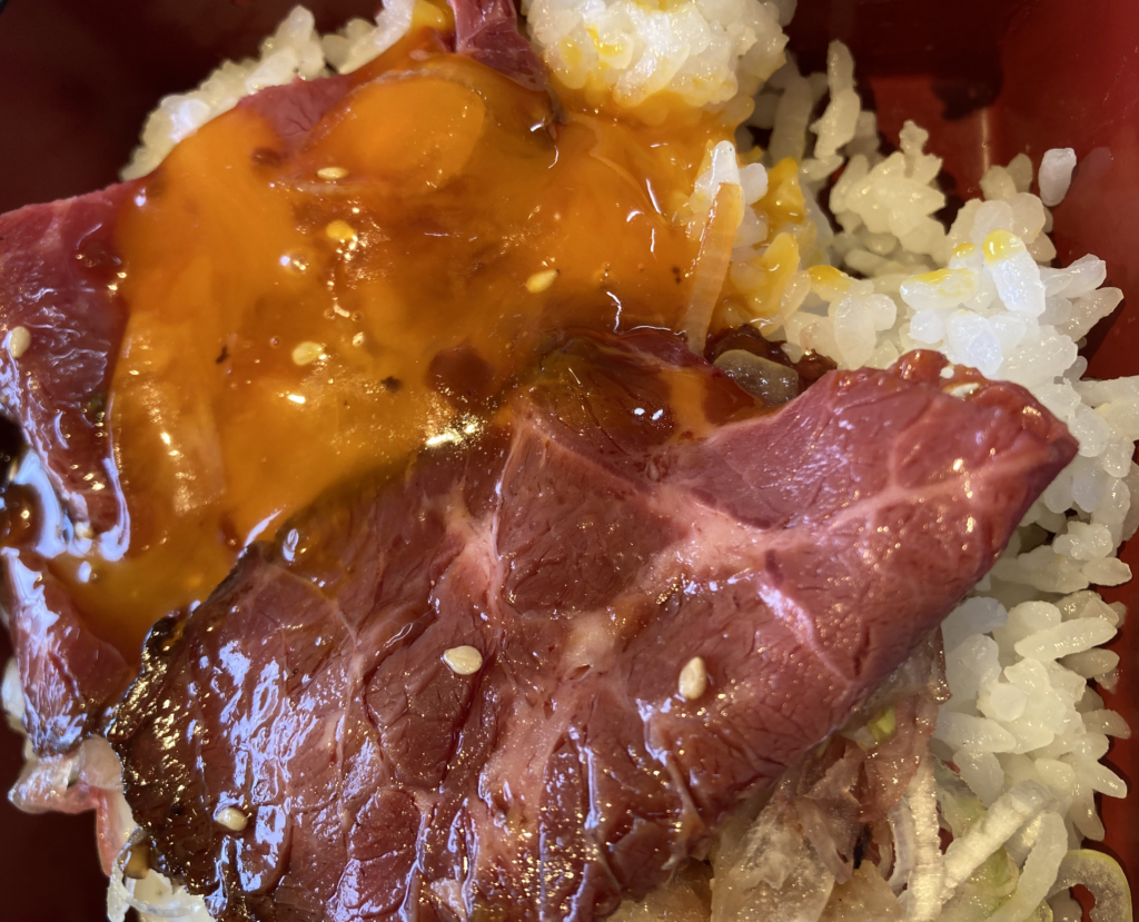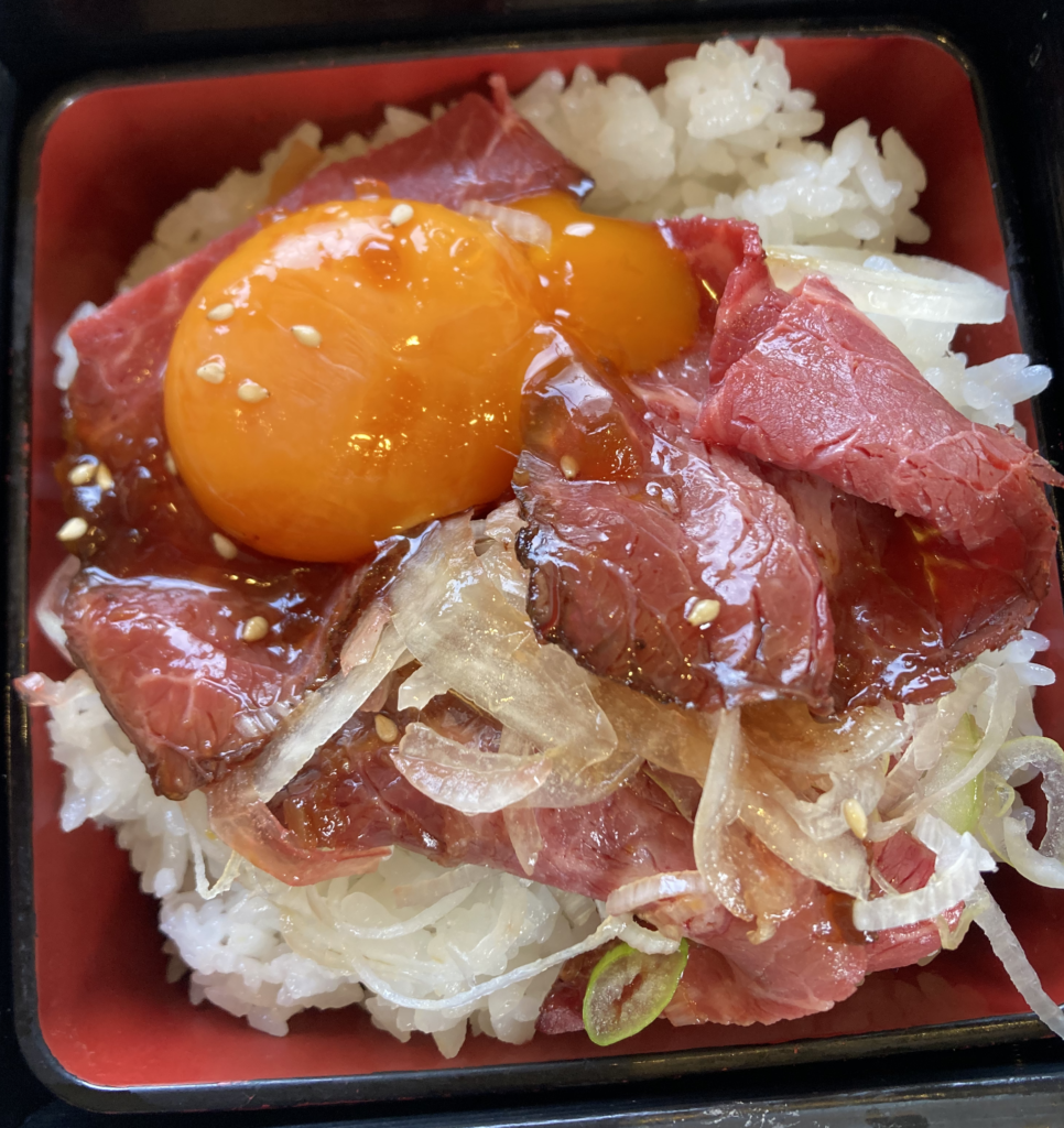 ローストビーフをご飯に豪快に乗せる — 即席ローストビーフ丼。