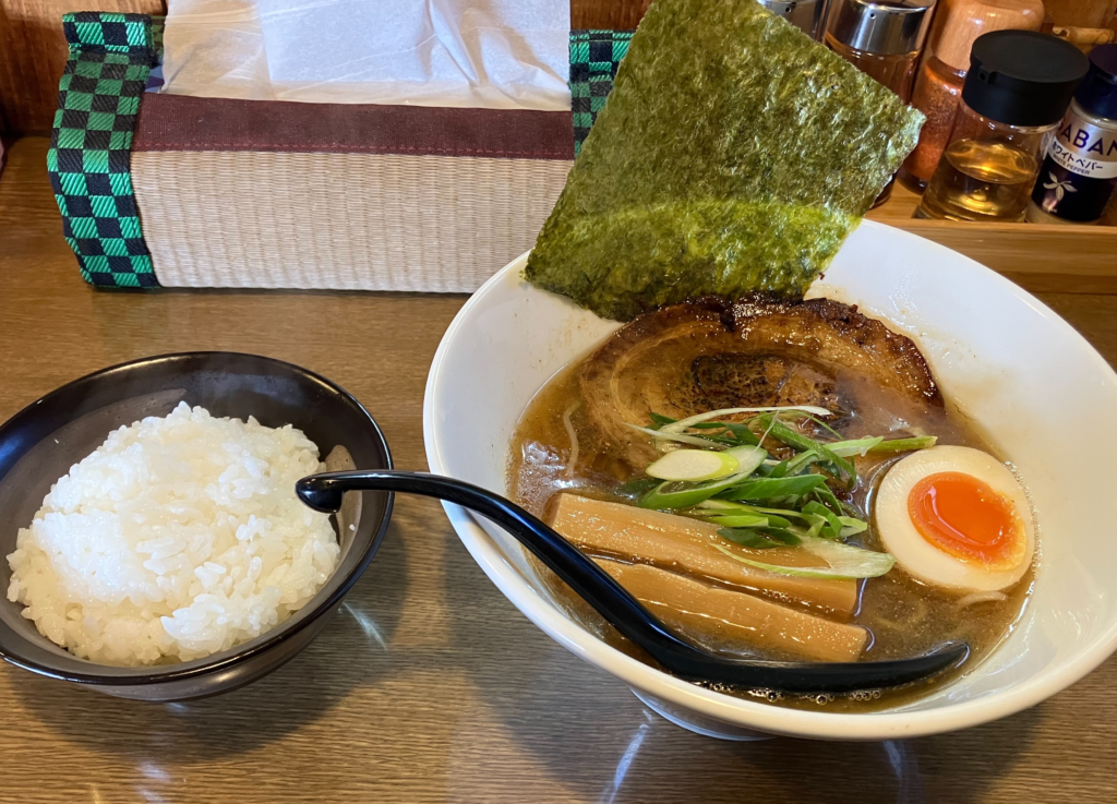 あごだし醤油らーめんとライス、完成度高いです。