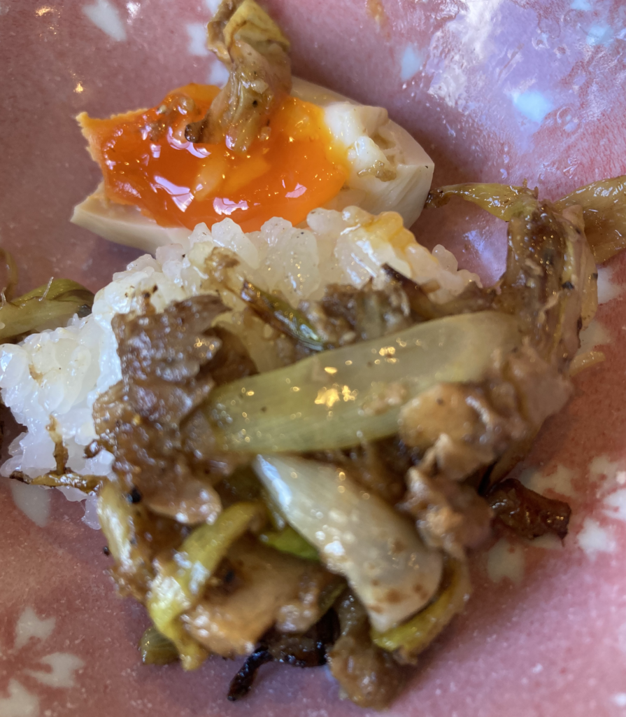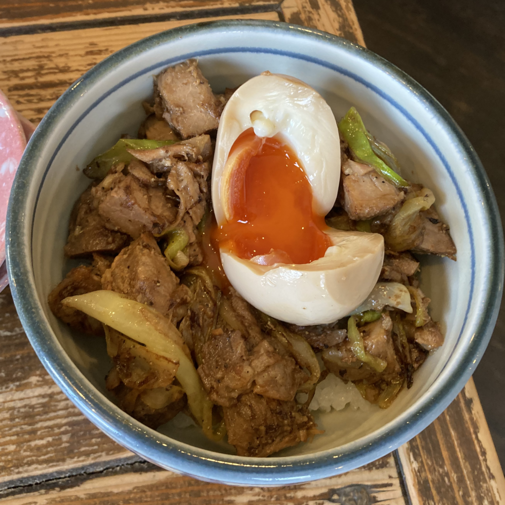 ラーメンの醤油感と、丼のコク。味の層が厚くなります。