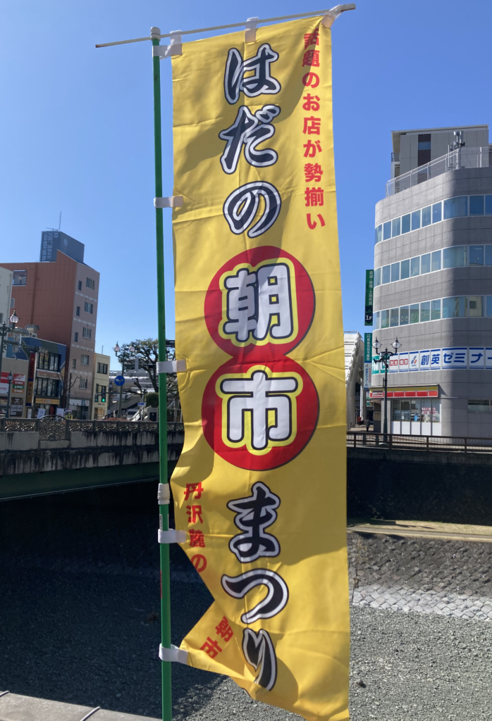 秦野では定期的に開催されているこの朝市。車が通る駅前の道路を歩行者天国にし、地元飲食店や商店が出店するイベントです。