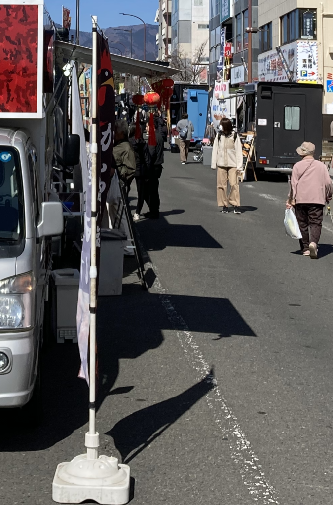 普段は車が行き交う場所ですが、この日は完全に歩行者専用となり、道の両側にはさまざまな出店が並びます。