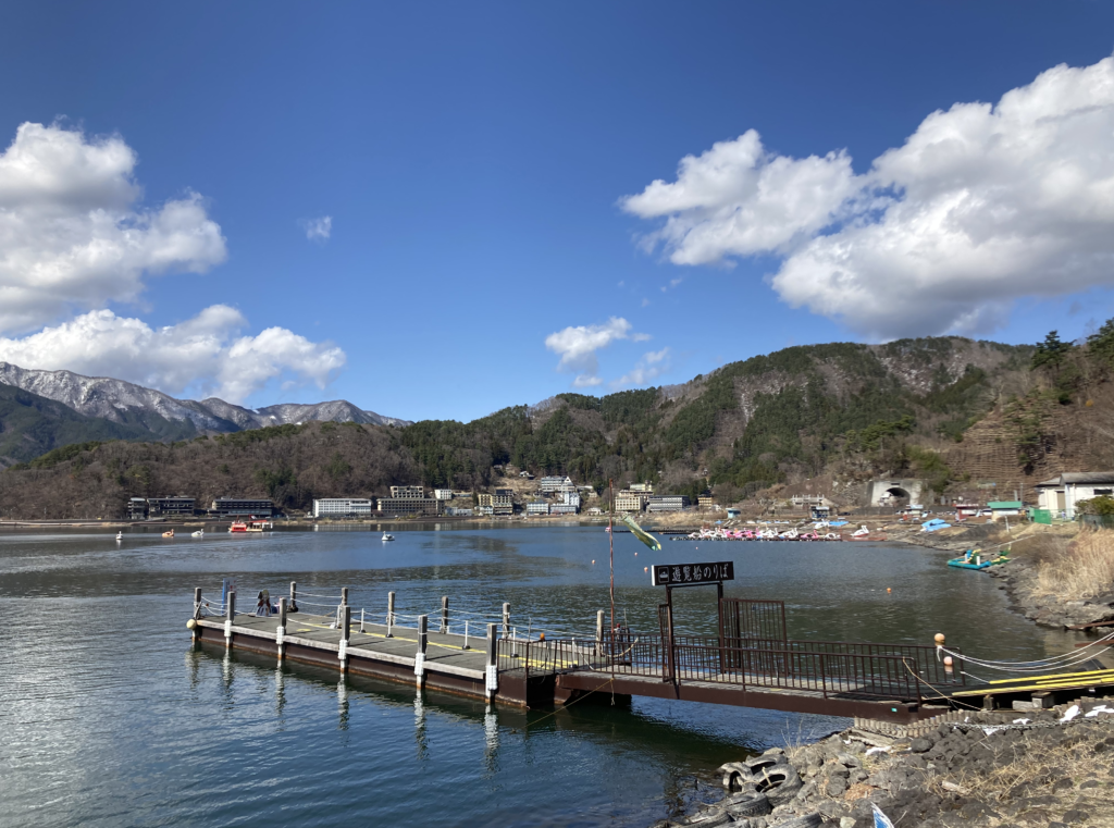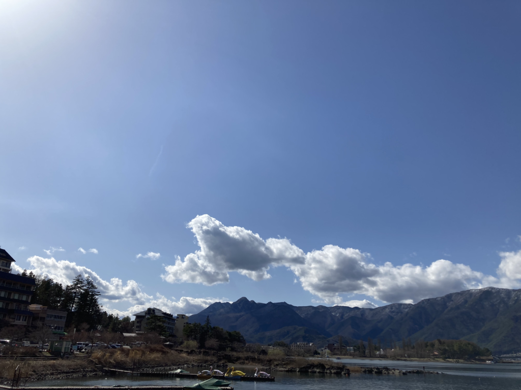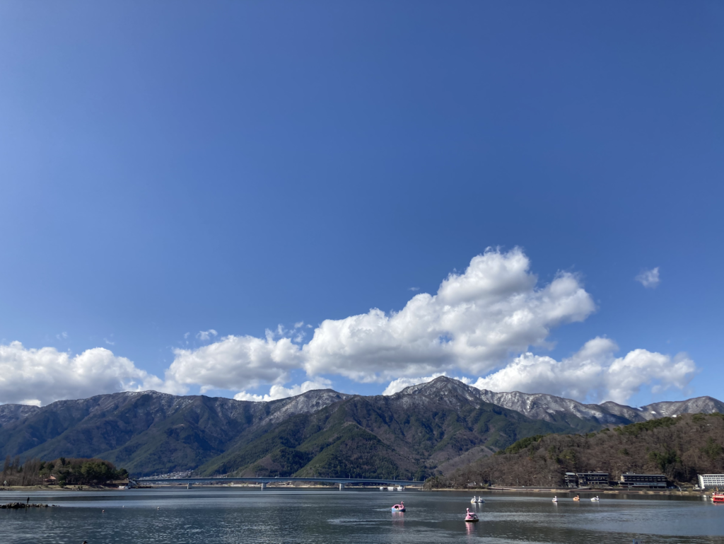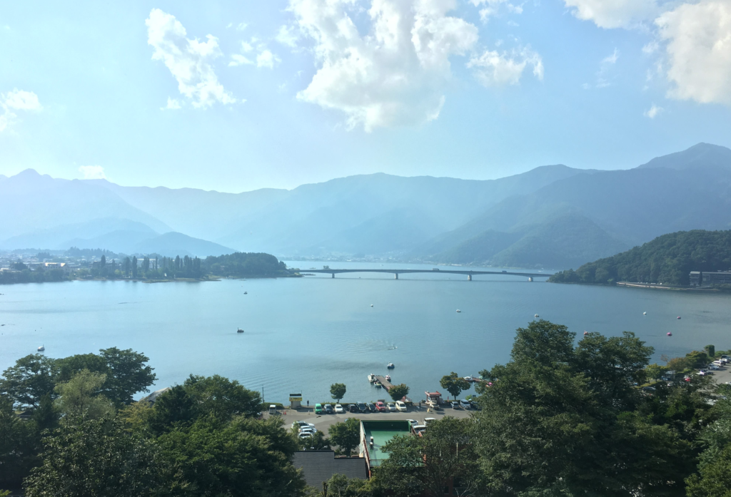 外に出ると、河口湖の空気が迎えてくれます。