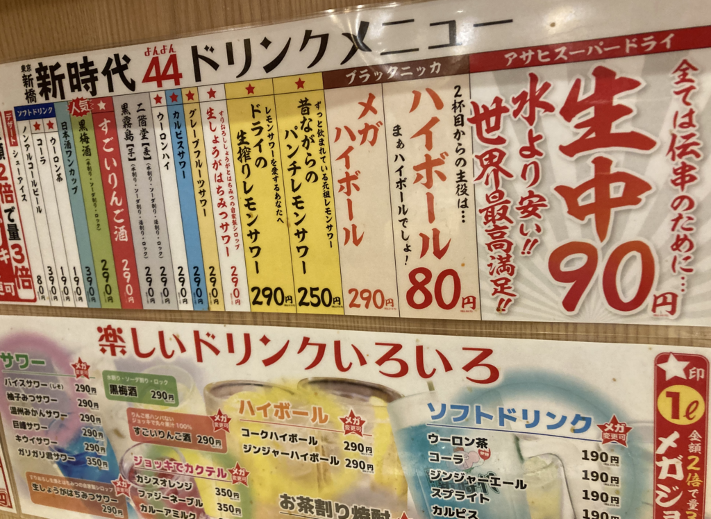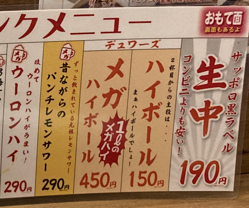 私の定番:ビール90円 → ハイボール80円
