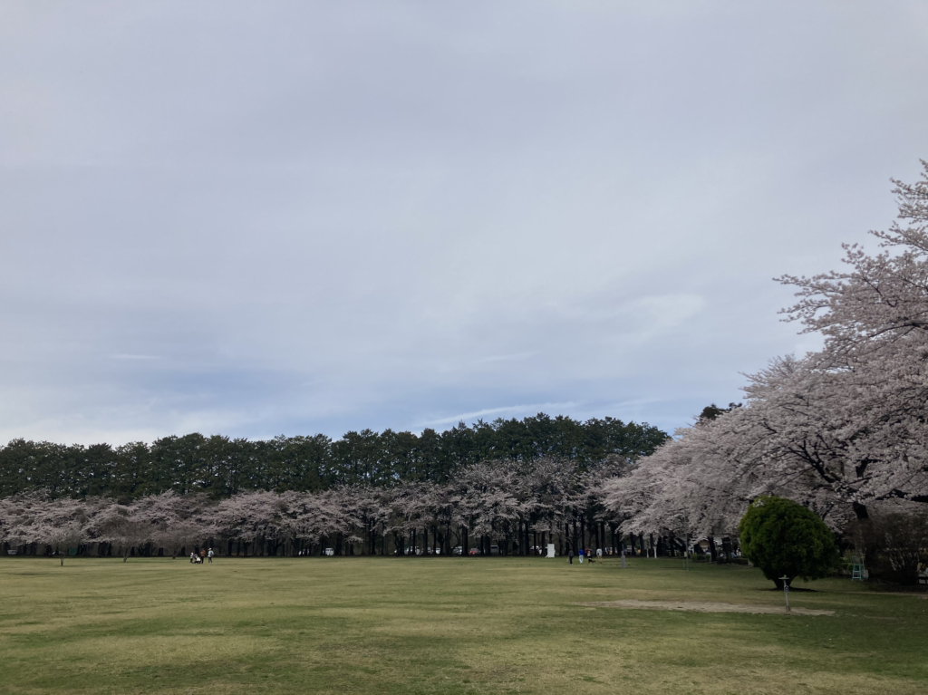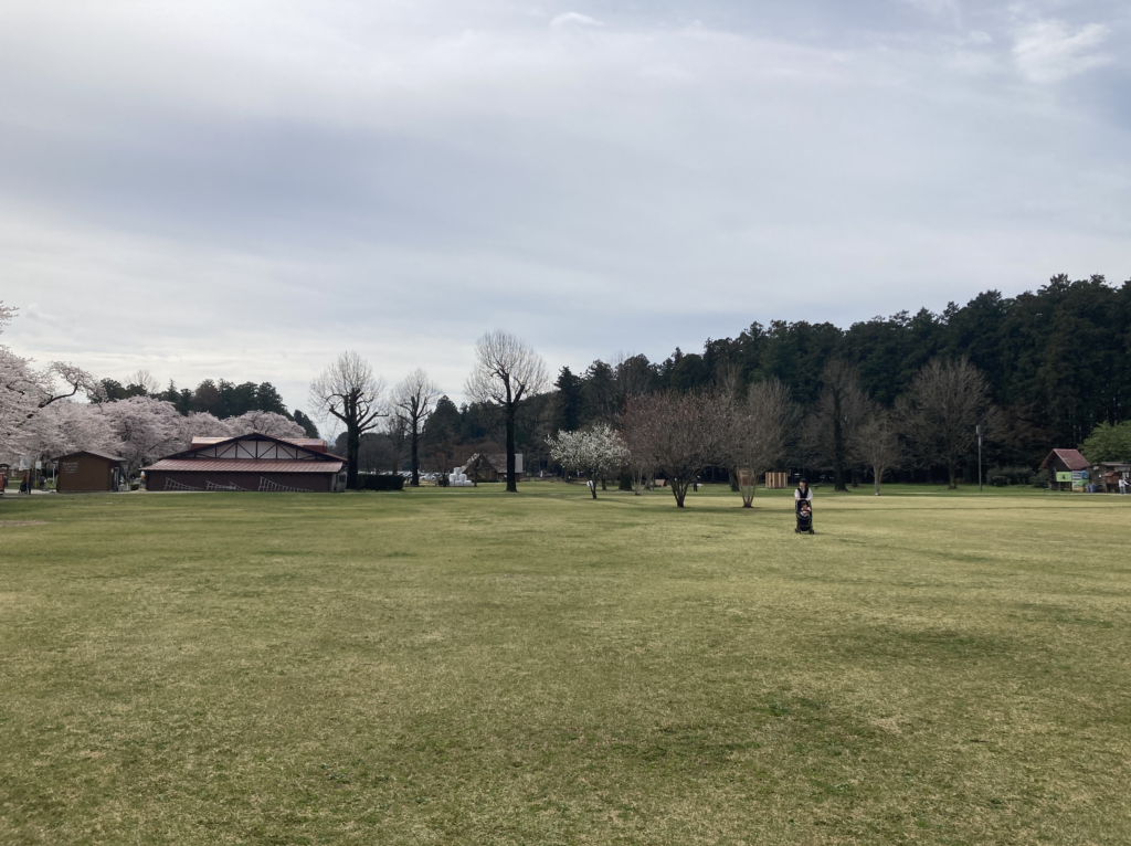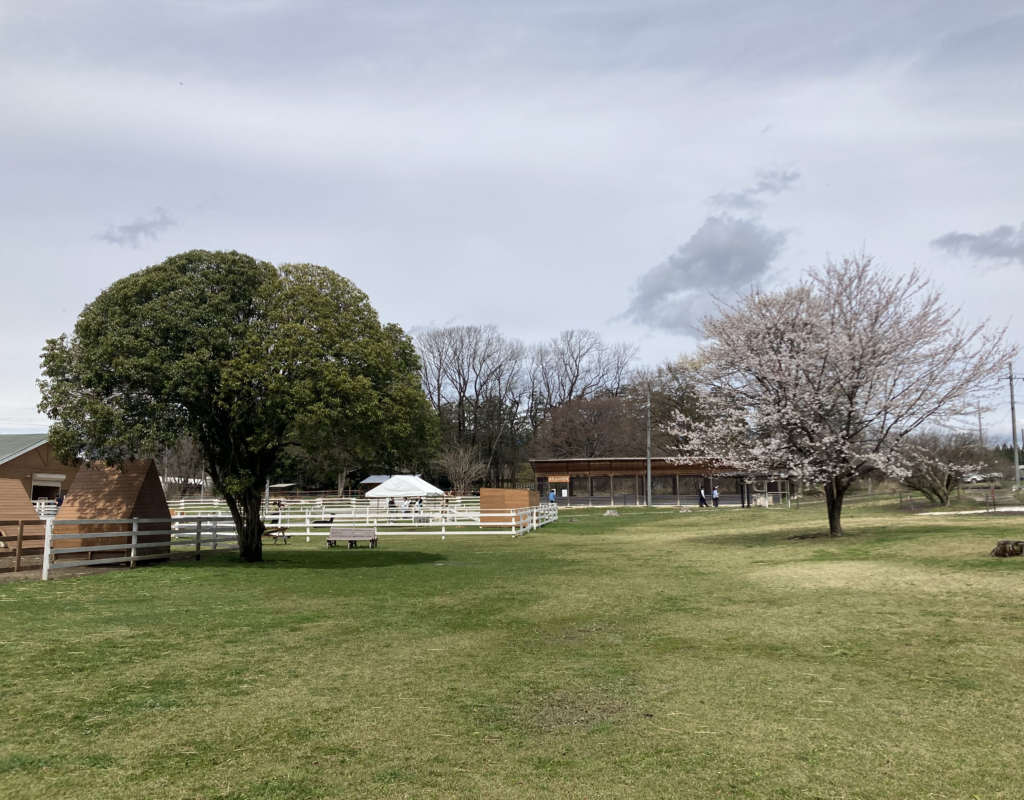 牧場という広大な敷地と、満開の桜。