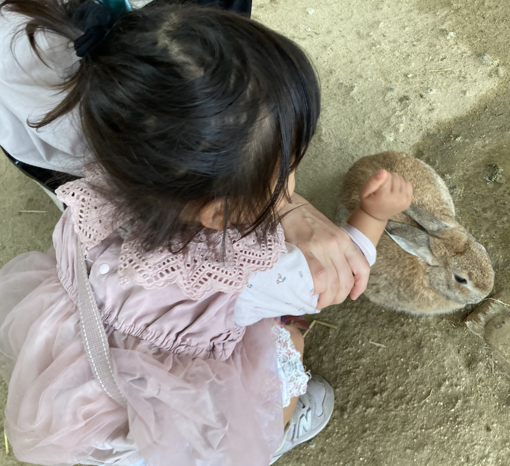 娘は、うさぎに対しては興味津々。