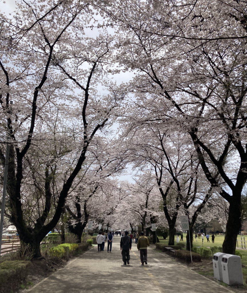 ふれあい広場を後にし、再び桜の並木道へ。