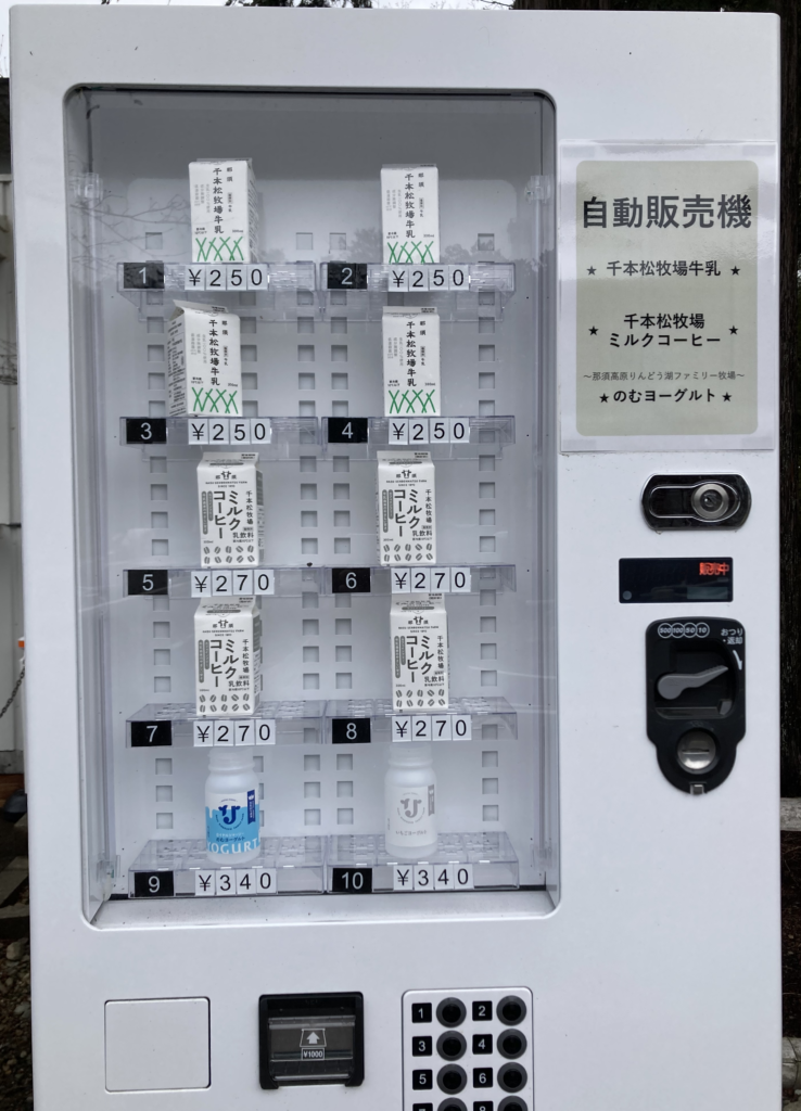 自動販売機で牛乳を購入し、いちごと合わせていただきます。