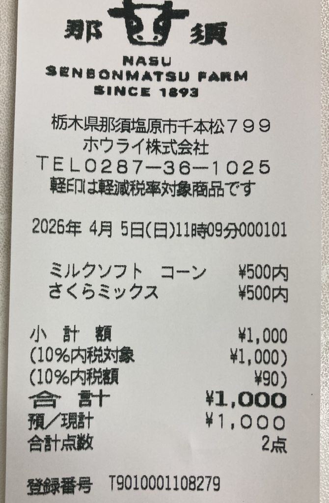 - ソフトクリーム購入(領収証あり)
