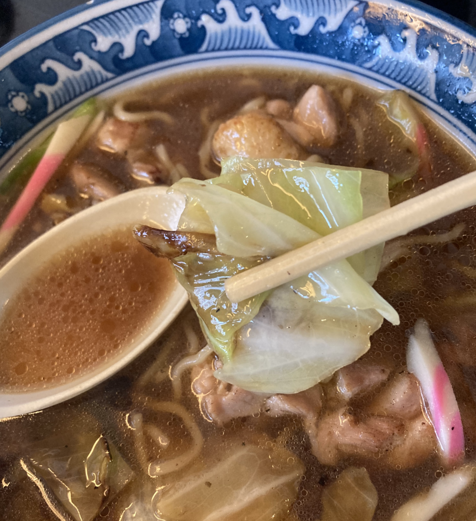 - 具材:キャベツ・チャーシュー・かまぼこ → シンプルだが機能的