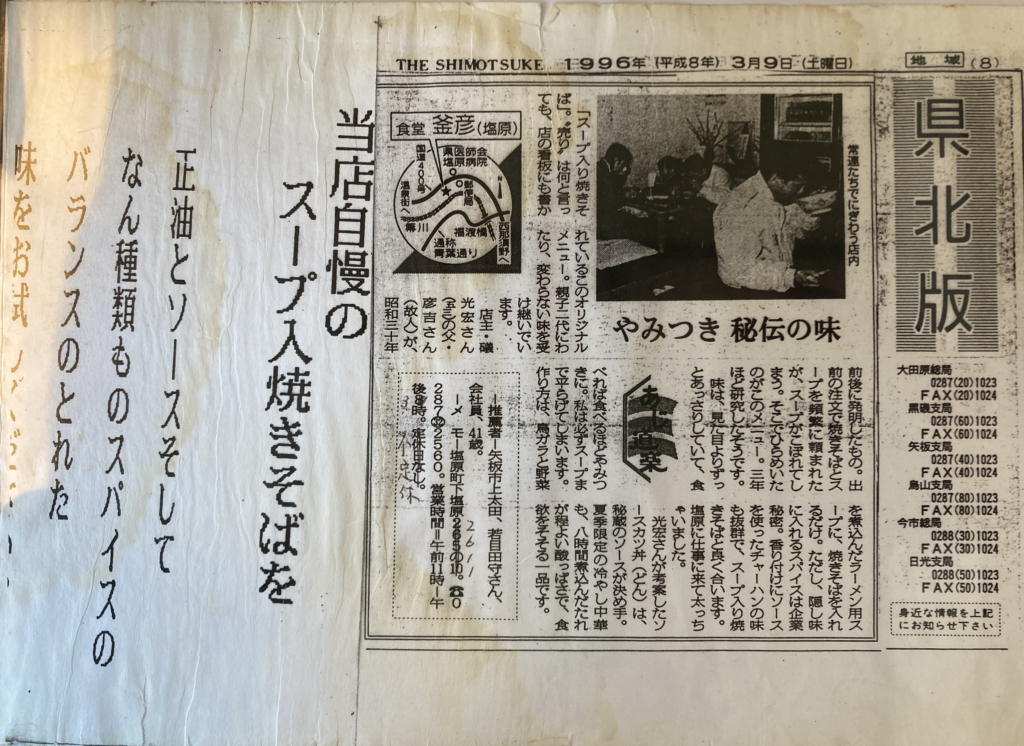 那須塩原温泉取材の一環として訪れたのは、スープ入り焼きそば発祥の店、釜彦。