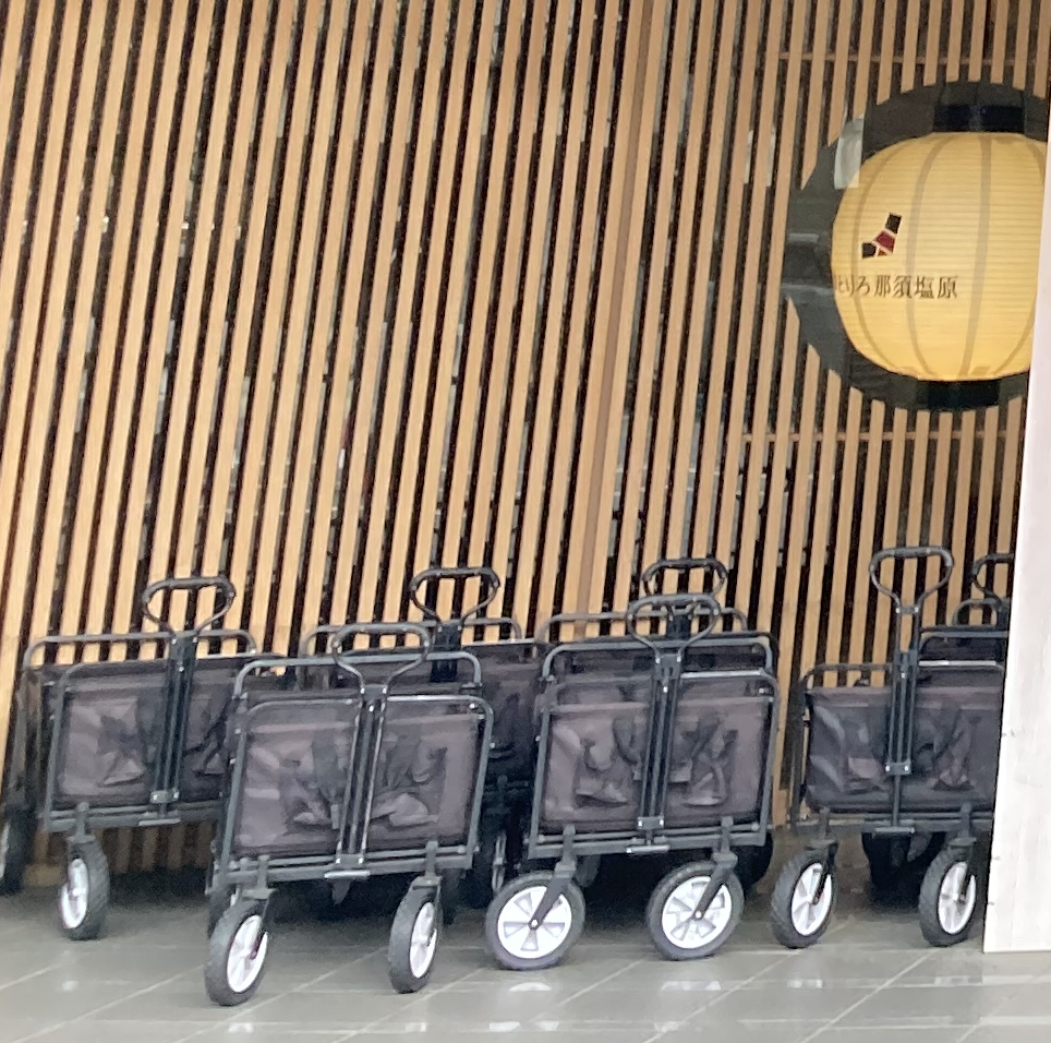 エントランス脇には、荷物運び用のラックが用意されており、ファミリー層や長期滞在にも配慮されている様子。
