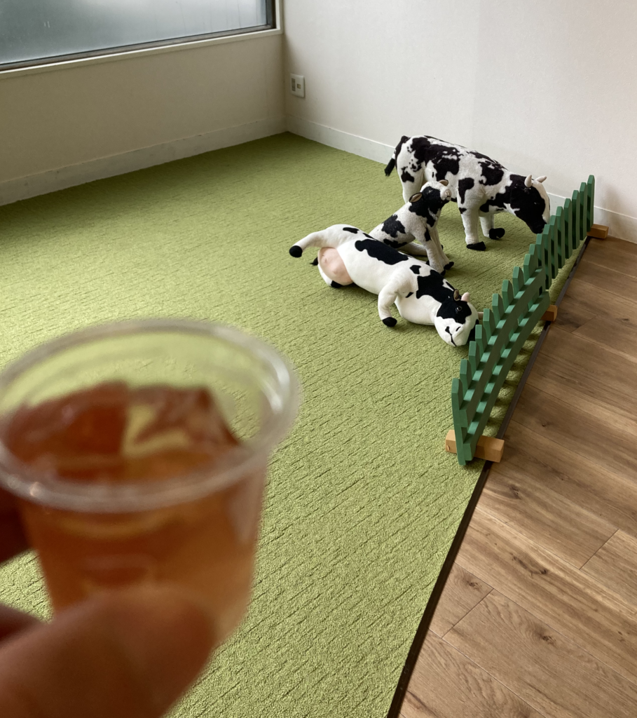 さらに牛のぬいぐるみもあり、娘はここで夢中になって遊んでいました。
