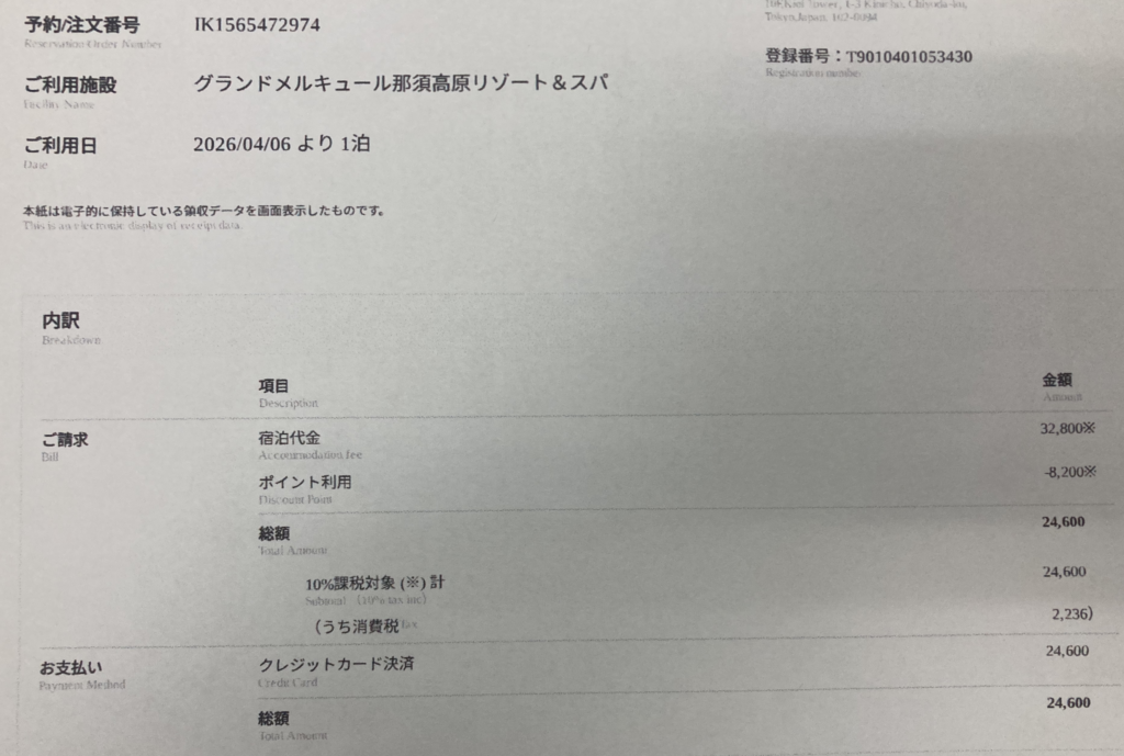 那須高原にあるグランドメルキュール那須高原に宿泊しました。