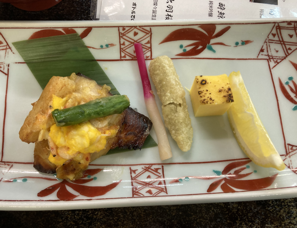 牛蒡の香ばしさとレモンの酸味が、日本酒を進めてきます。