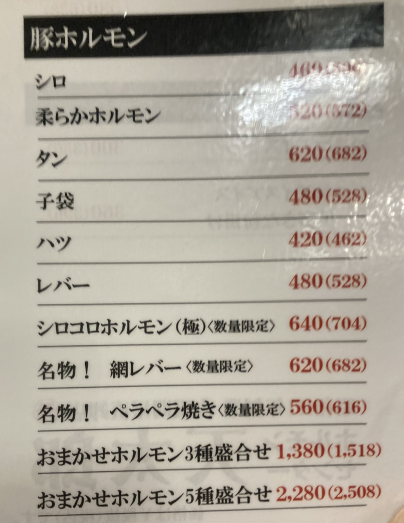 ・他ホルモン(ハツ・ミノ等)確認