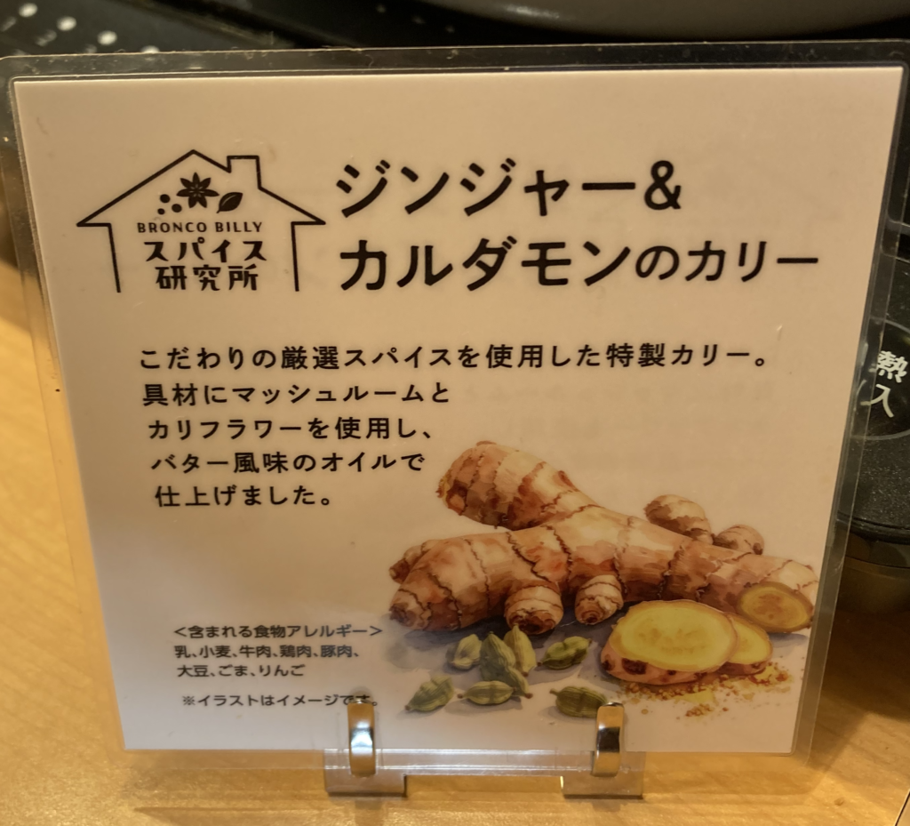 この日のカレーはジンジャー&カルダモン。