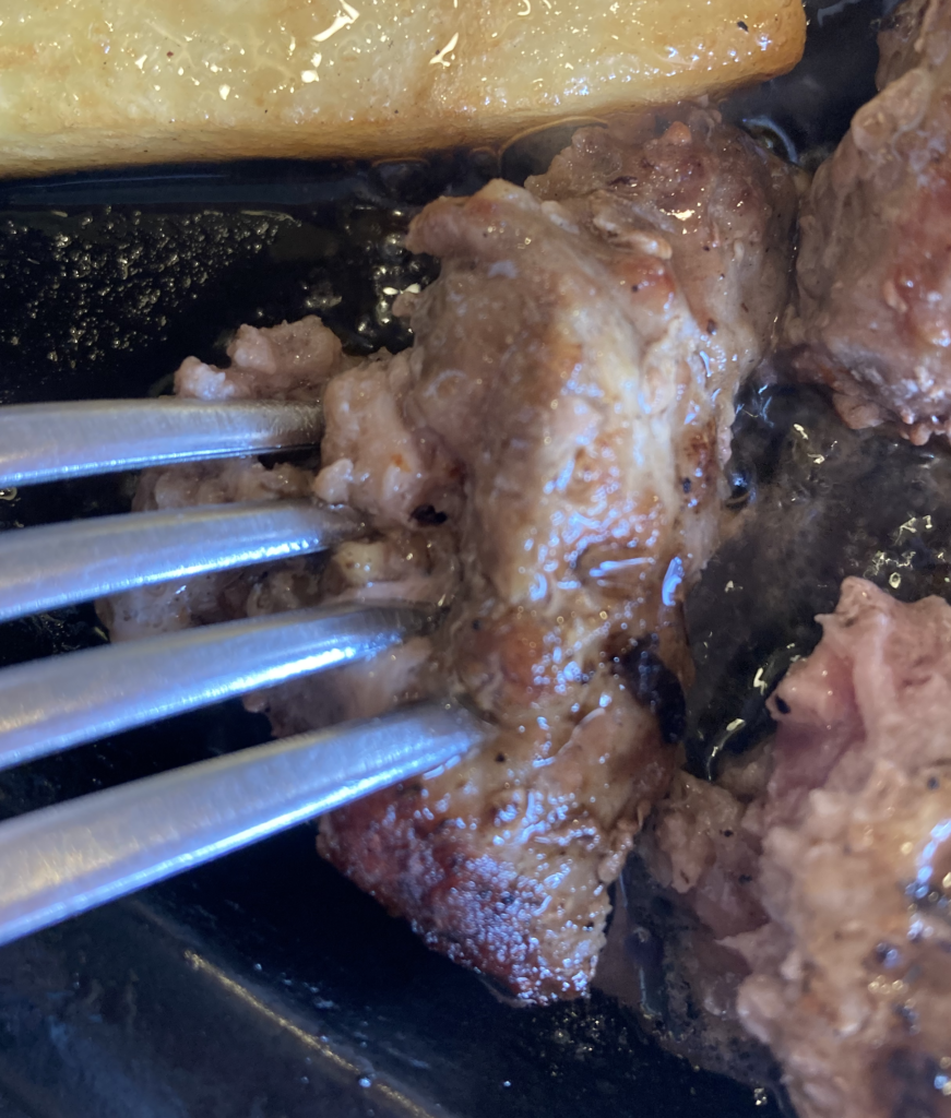肉の旨味をしっかり確認したあと、塩で引き締める。