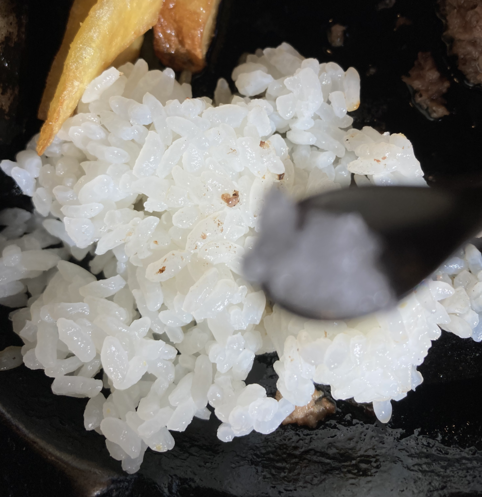- 鉄板でのご飯調理(独自体験)